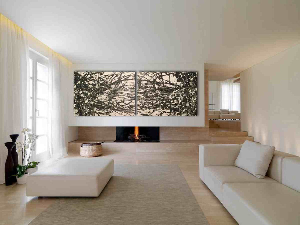A series of abstract art pieces displayed in modern living spaces, showcasing the seamless integration of contemporary artwork with stylish interior design. These images capture the essence of modern elegance and artistic expression within interior settings.